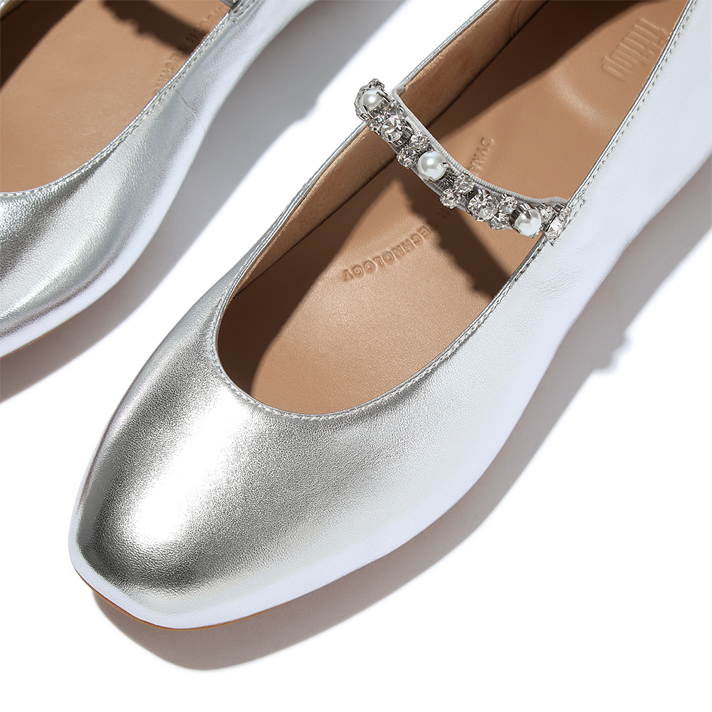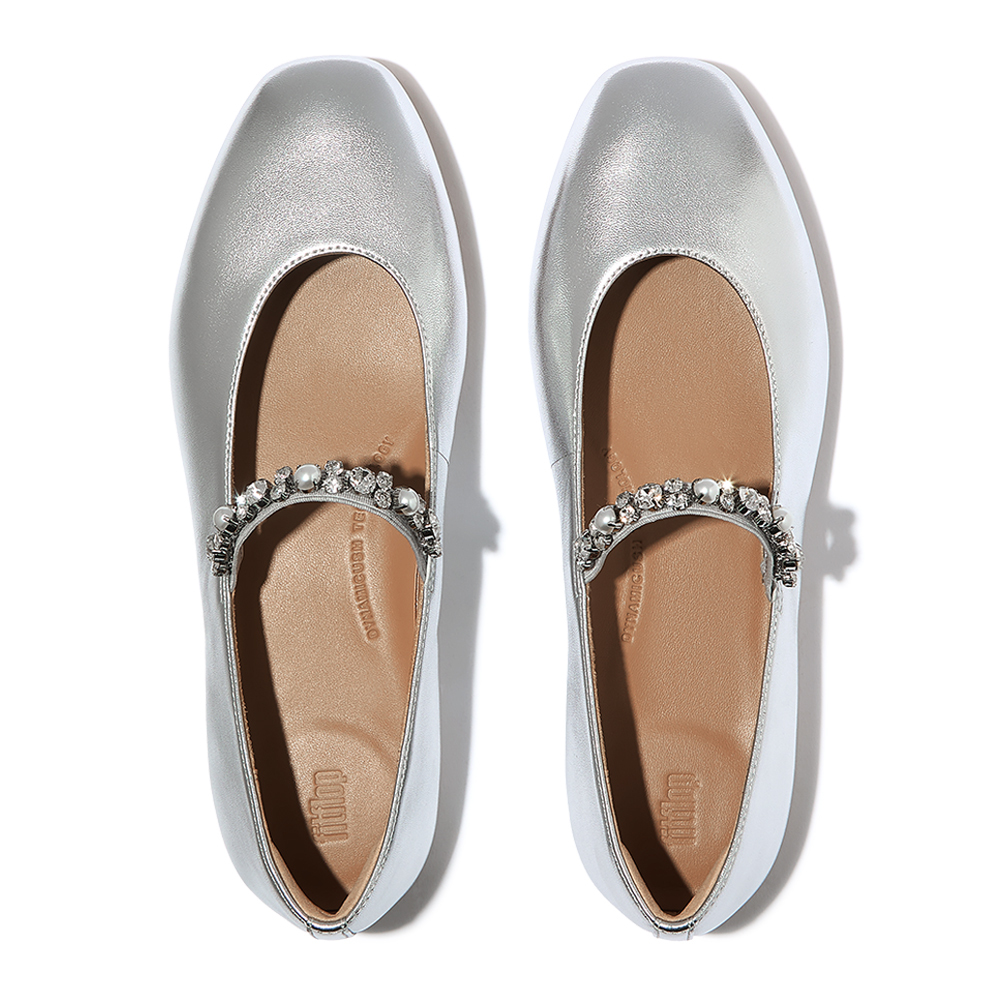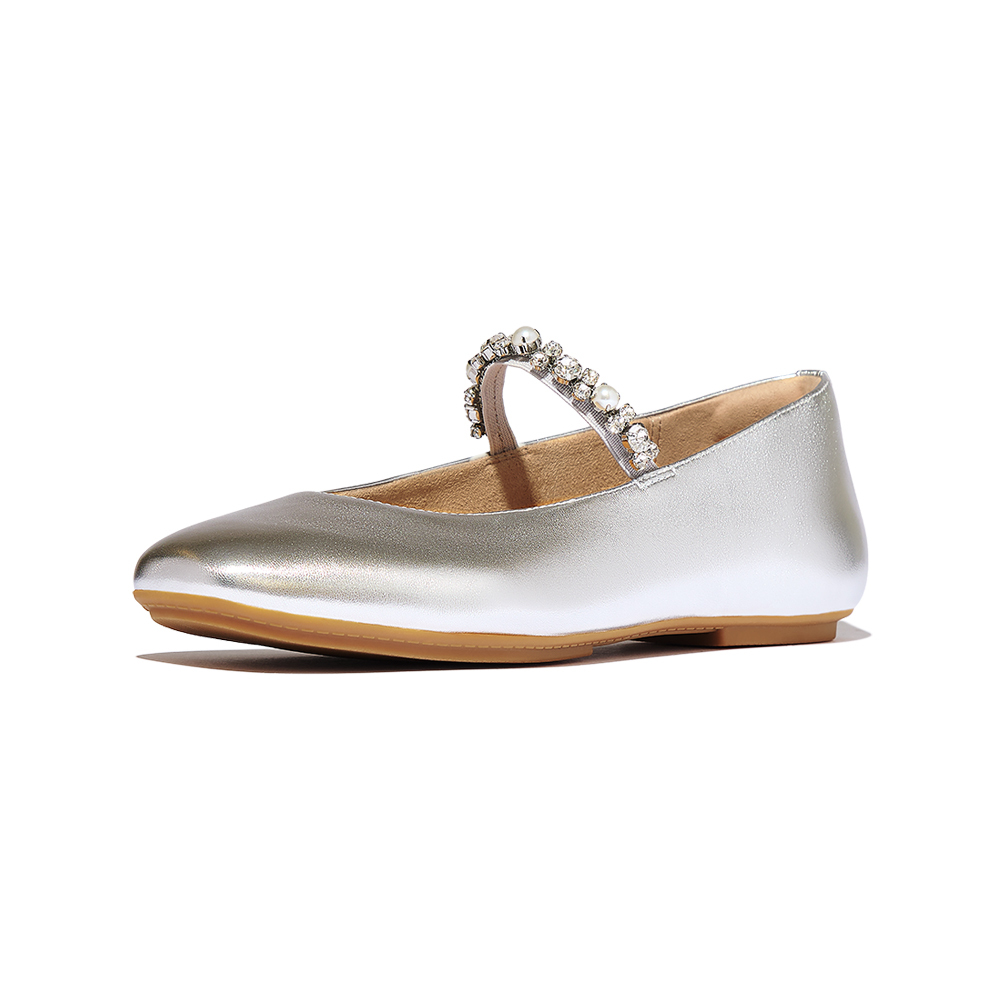 DELICATO 珍珠水鑽皮革芭蕾舞平底鞋-銀色