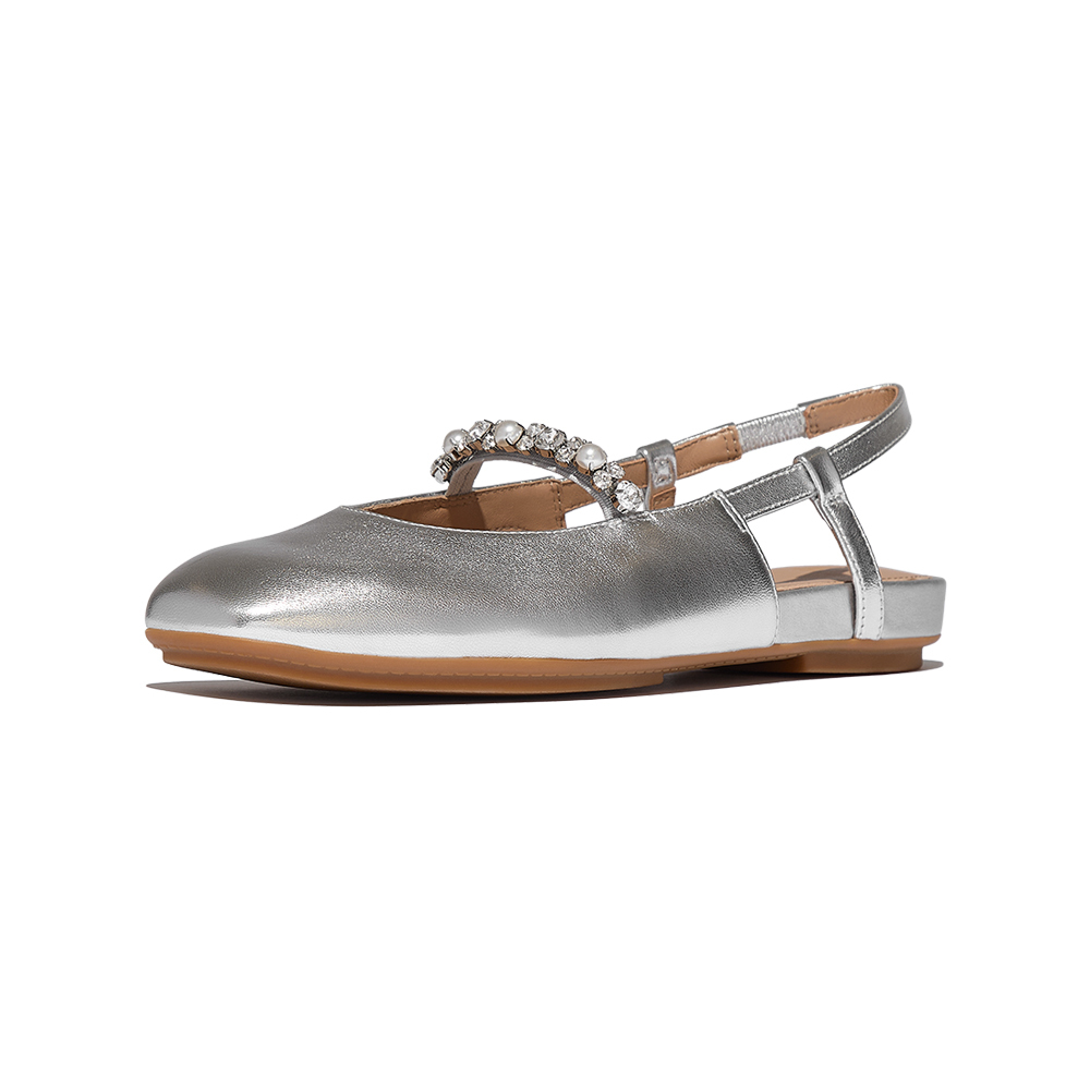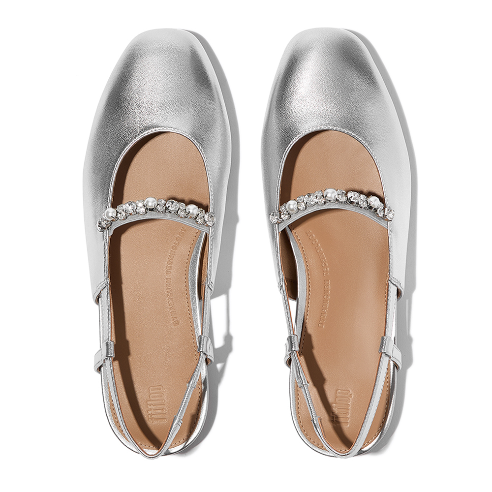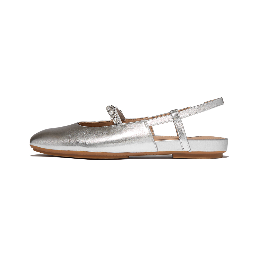 DELICATO 珍珠水鑽皮革露跟鞋-銀色