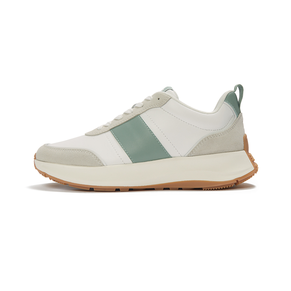 F-MODE FLOW 皮革/麂皮厚底休閒鞋-都會白/鼠尾草綠