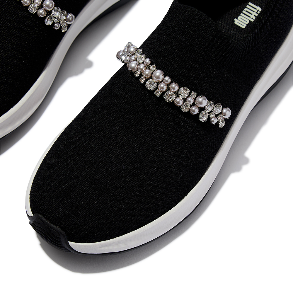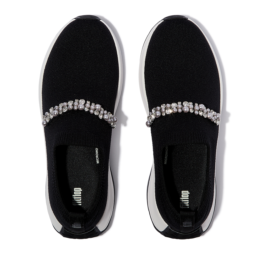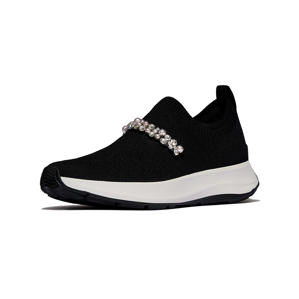 F-MODE FLOW珍珠水鑽針織套穿式休閒鞋-黑色