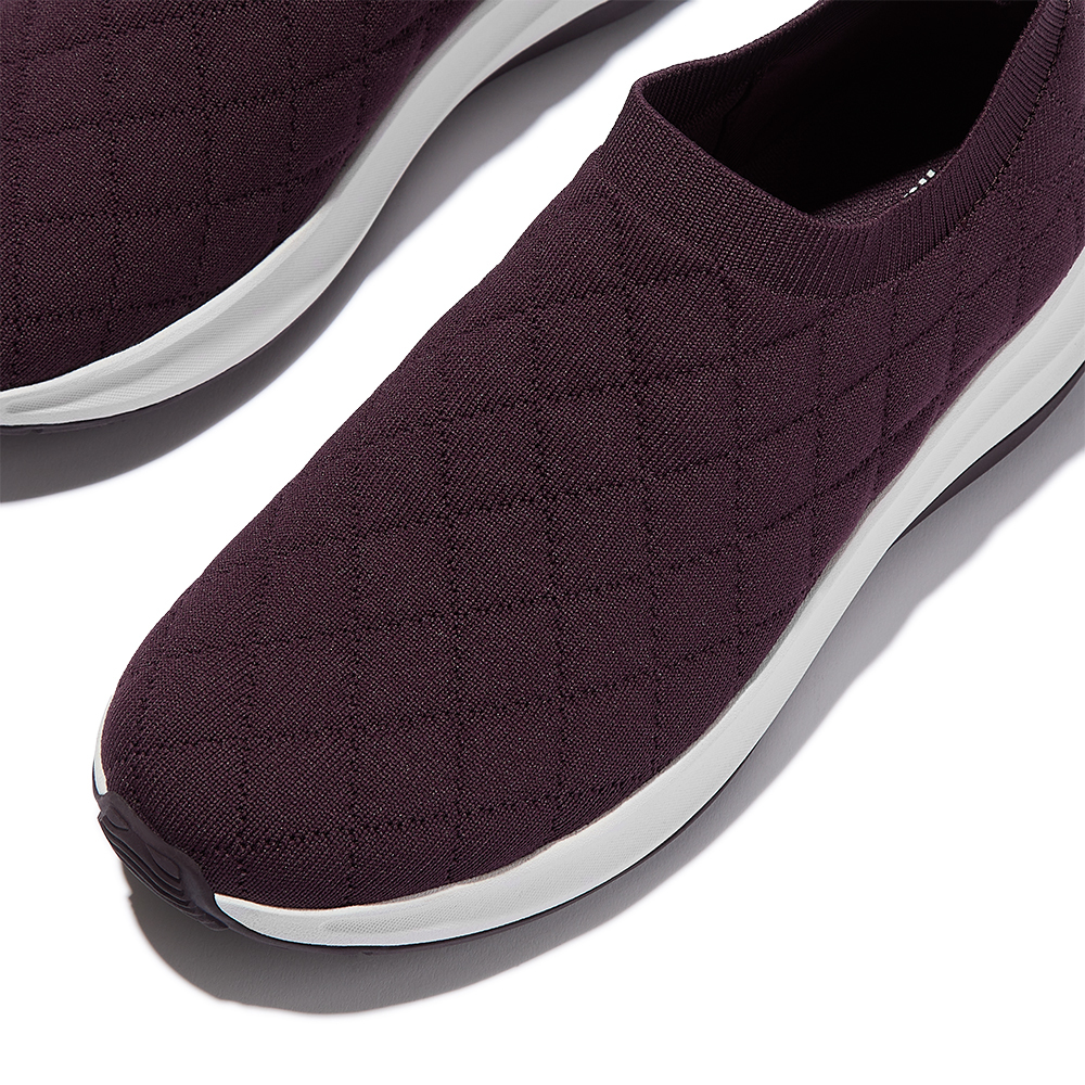 F-MODE FLOW 菱格紋針織套穿式休閒鞋-李子色
