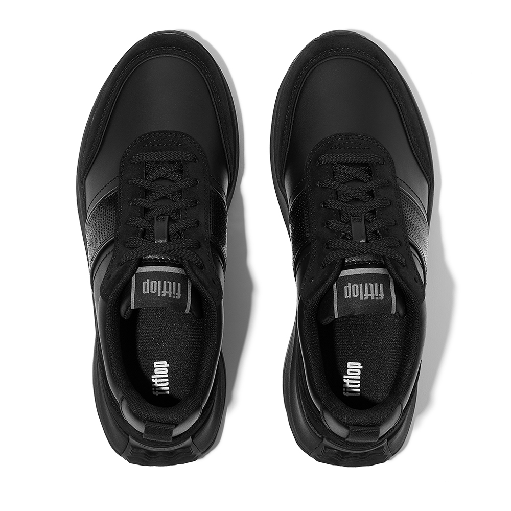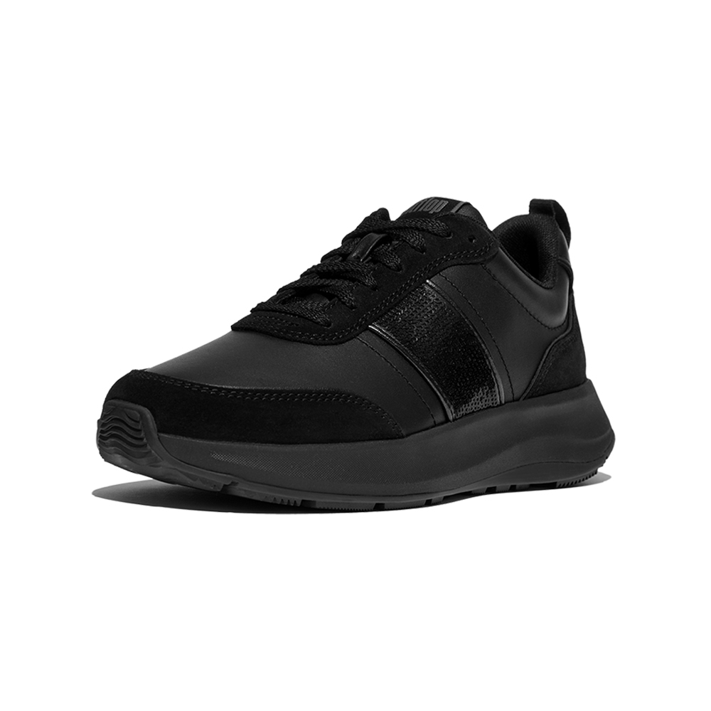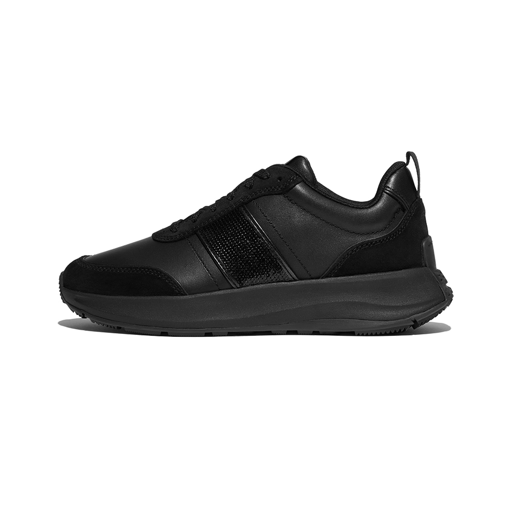 F-MODE FLOW 亮片/麂皮/皮革厚底休閒鞋-靚黑色
