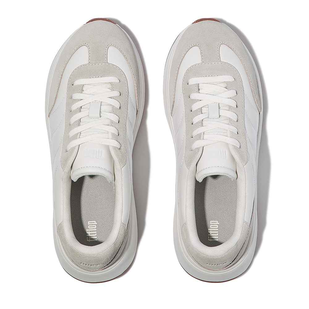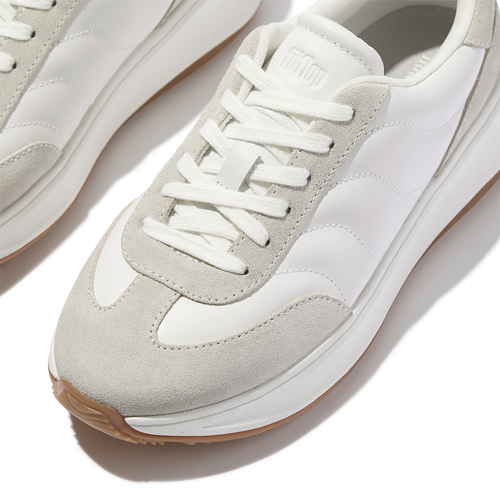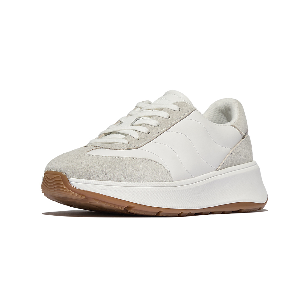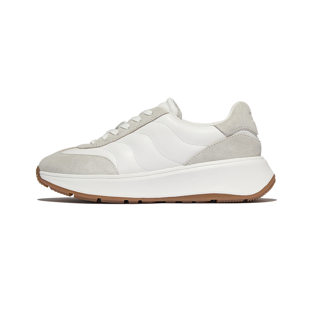 F-MODE T鞋頭波浪皮革/麂皮休閒鞋-都會白