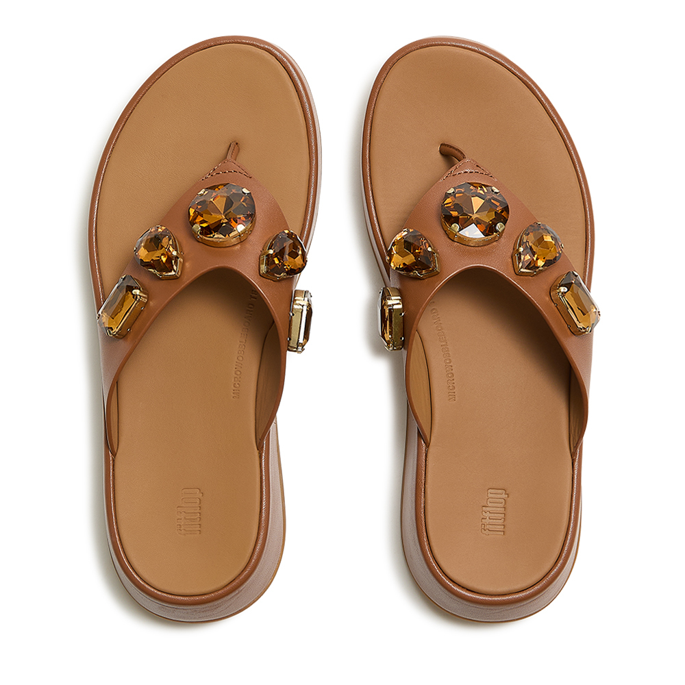 F-MODE 寶石皮革夾腳涼鞋 -深棕褐色