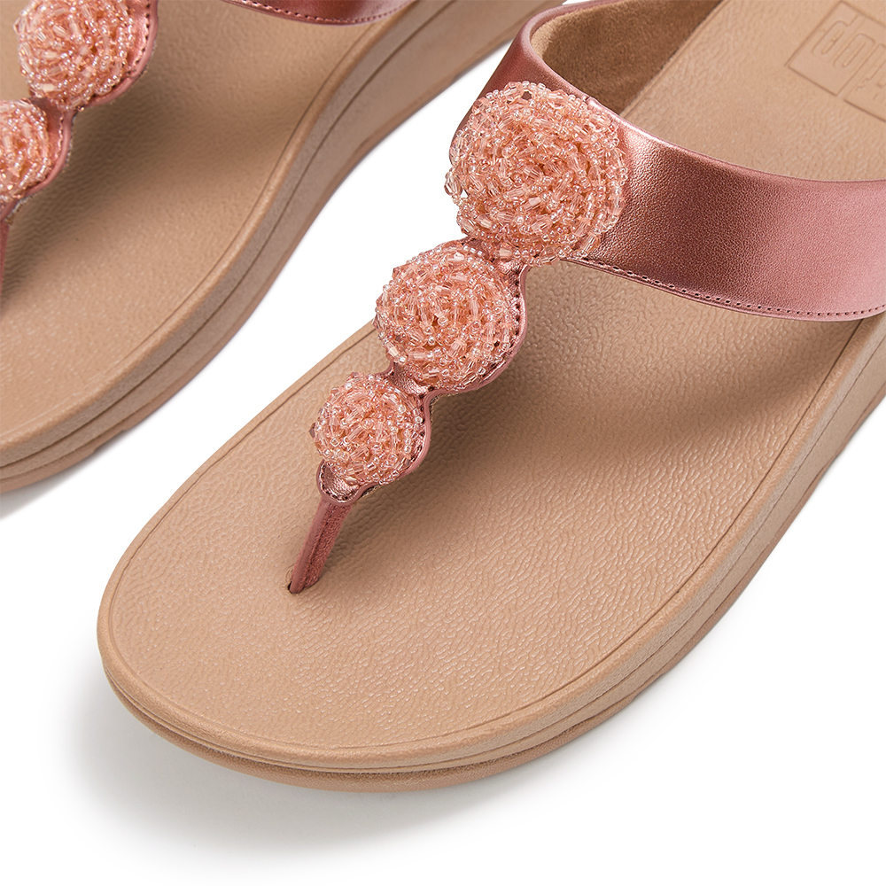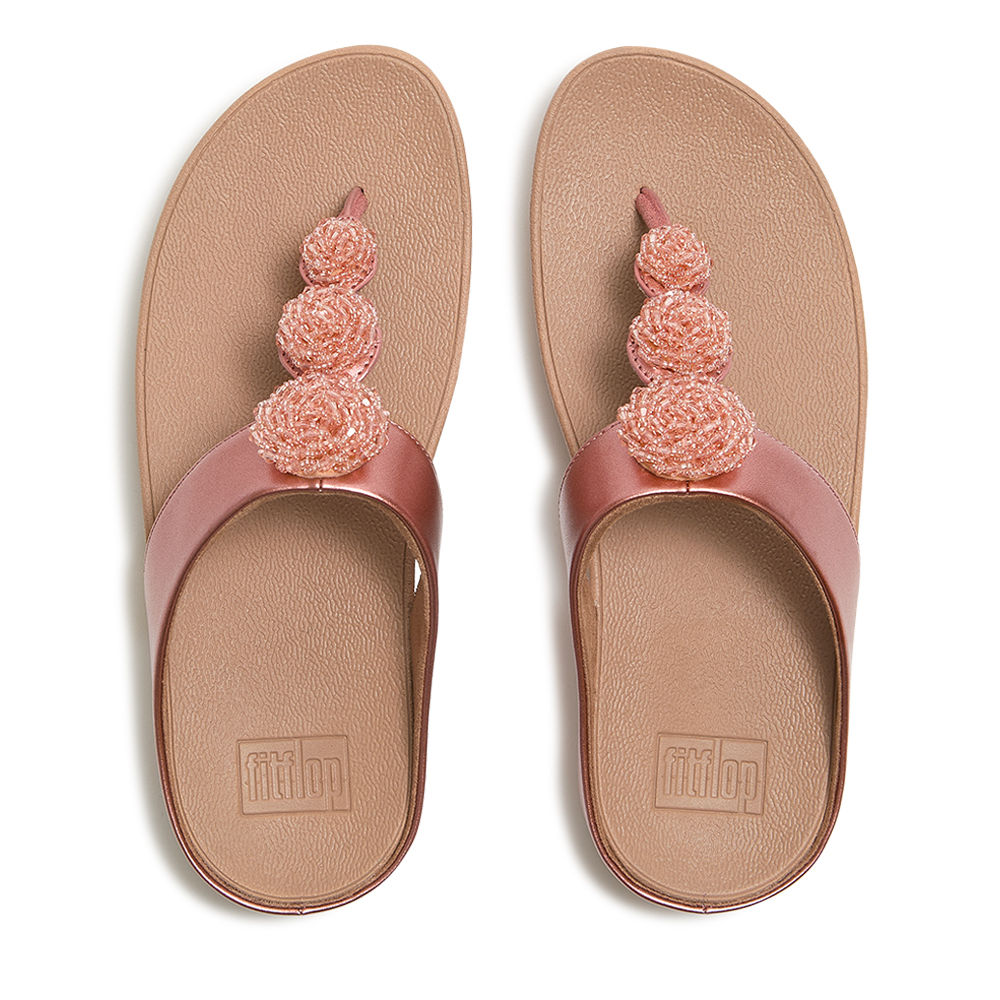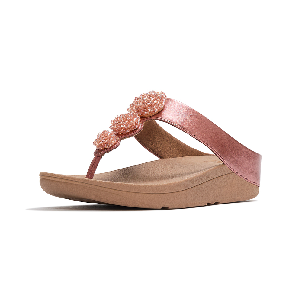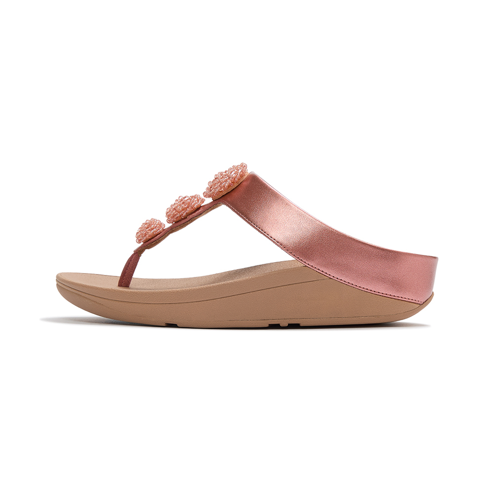 FINO 珠扣金屬色夾腳涼鞋-金屬鏽玫瑰色