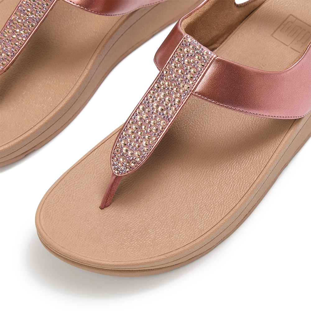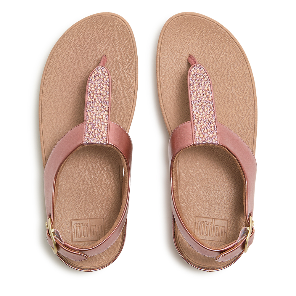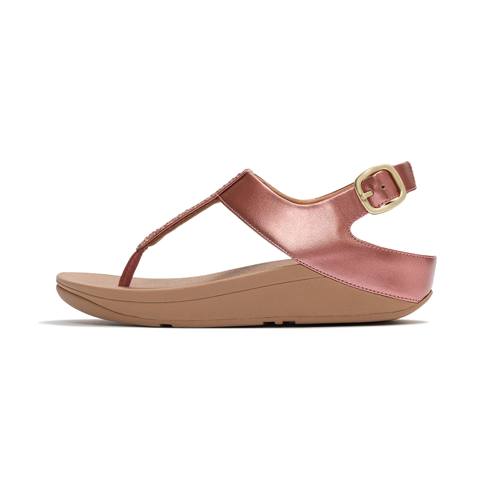 FINO 水鑽混合金屬色 T字帶涼鞋-金屬鏽玫瑰色