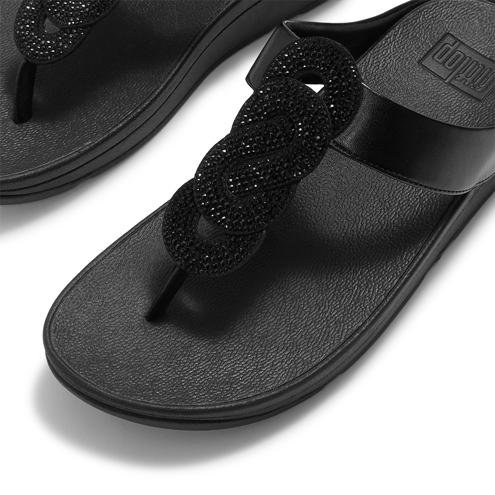 FINO 水鑽扭結夾腳涼鞋-靚黑色