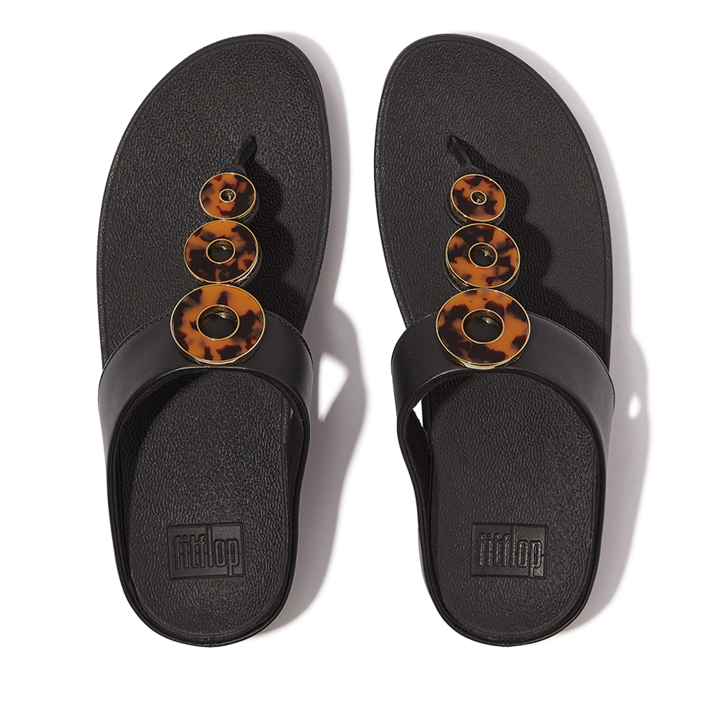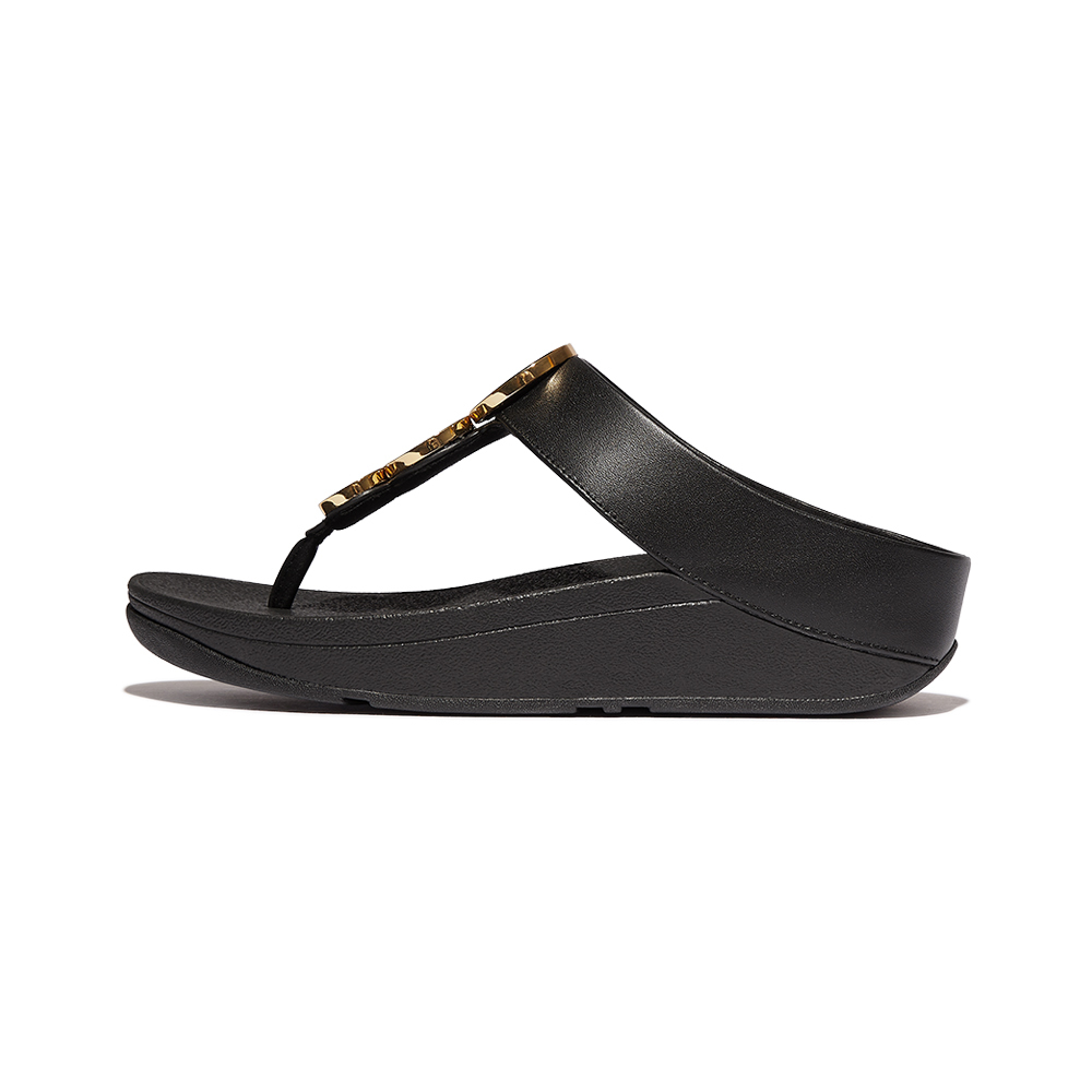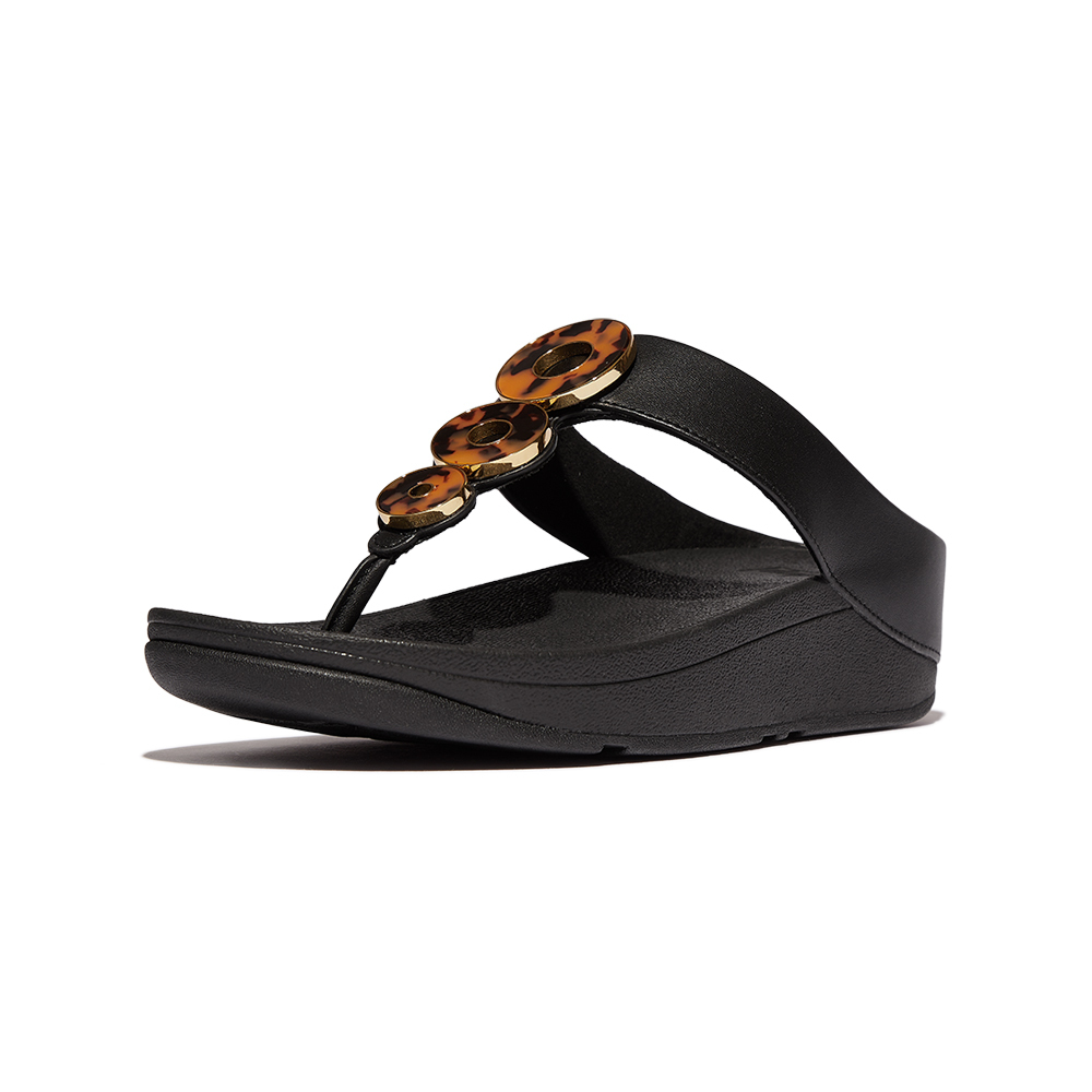 FINO樹脂圈皮革夾腳涼鞋-靚黑色
