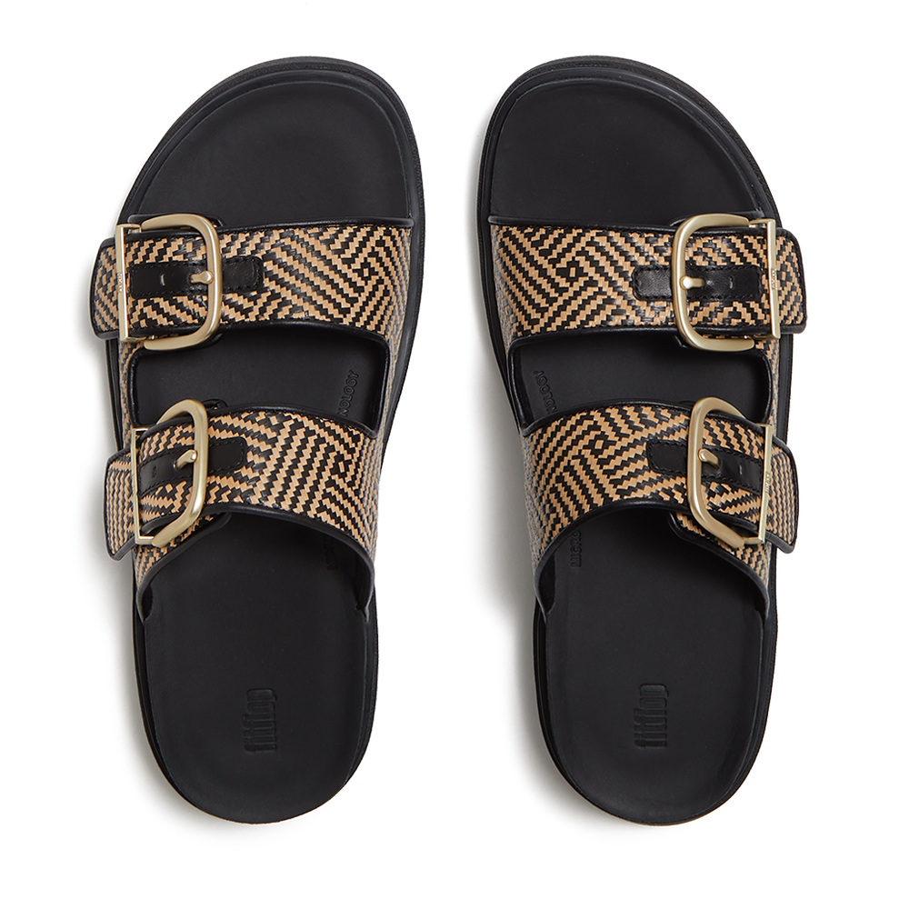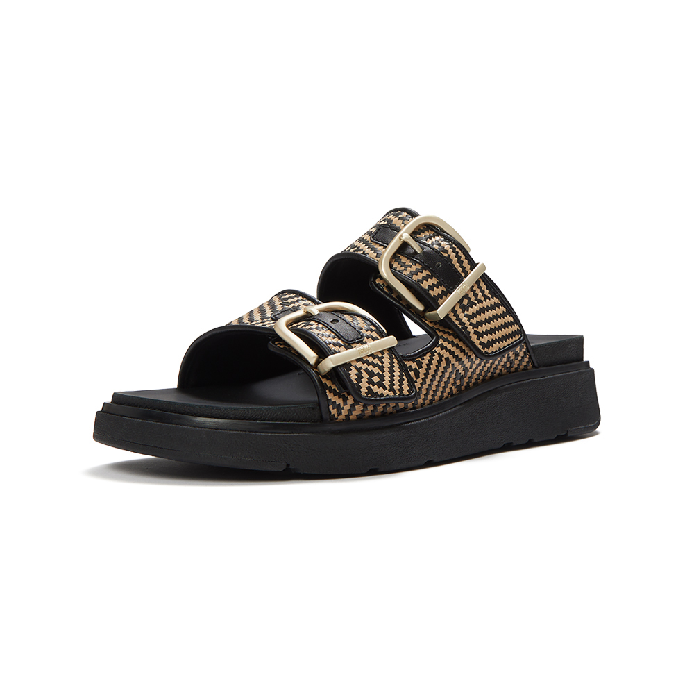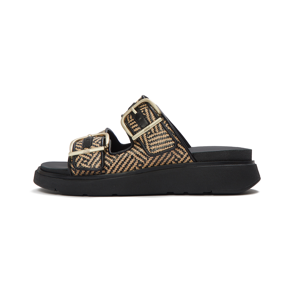 GEN-FF 幾何圖案編織扣環雙帶涼鞋-黑色