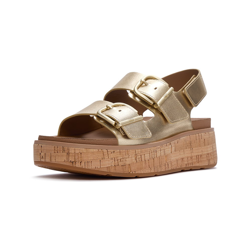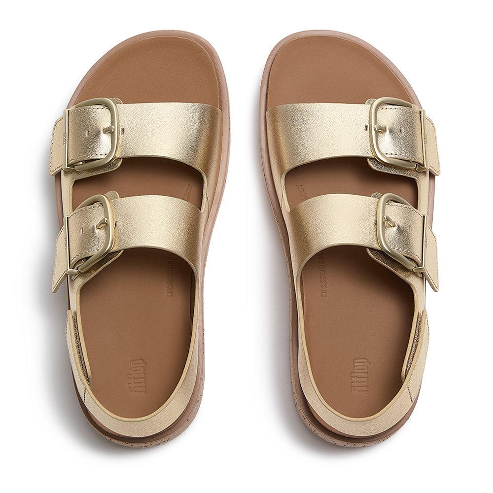 GEN-FF MAX 扣環皮革/軟木塞紋後帶涼鞋-鉑金色