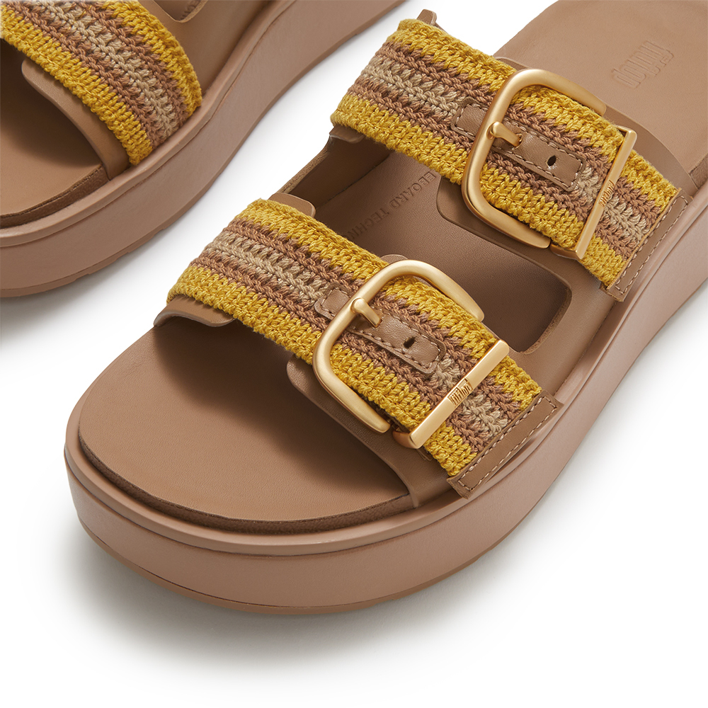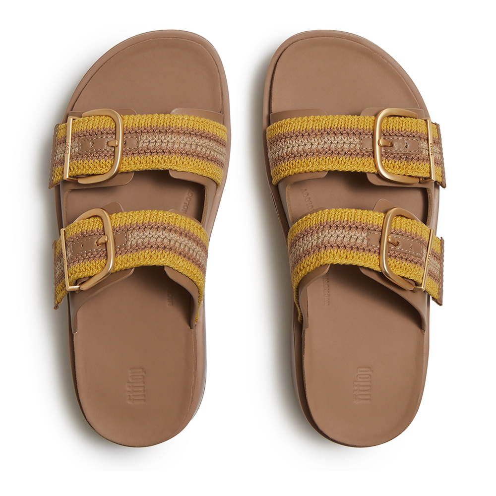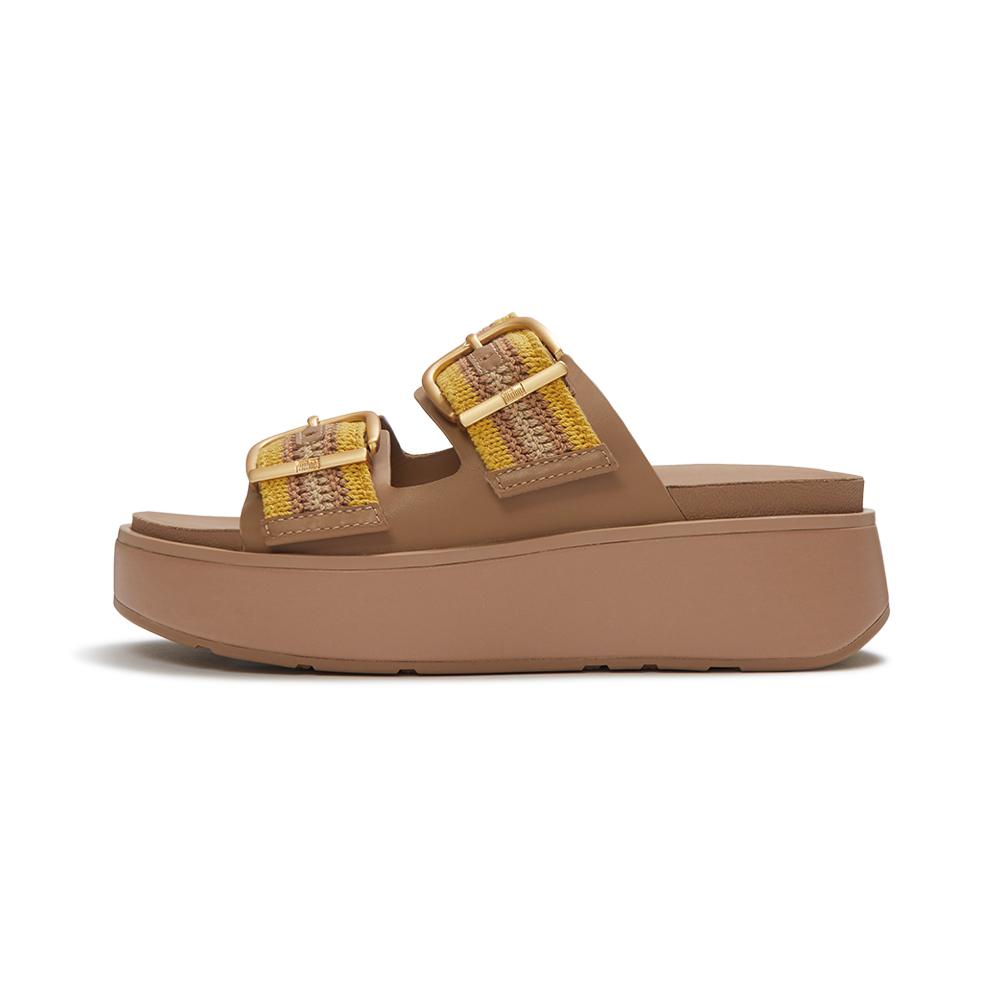 GEN-FF MAX 扣環條紋織帶雙帶涼鞋-薑黃色/古典棕褐混色