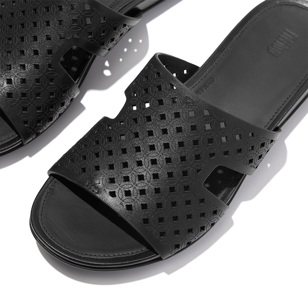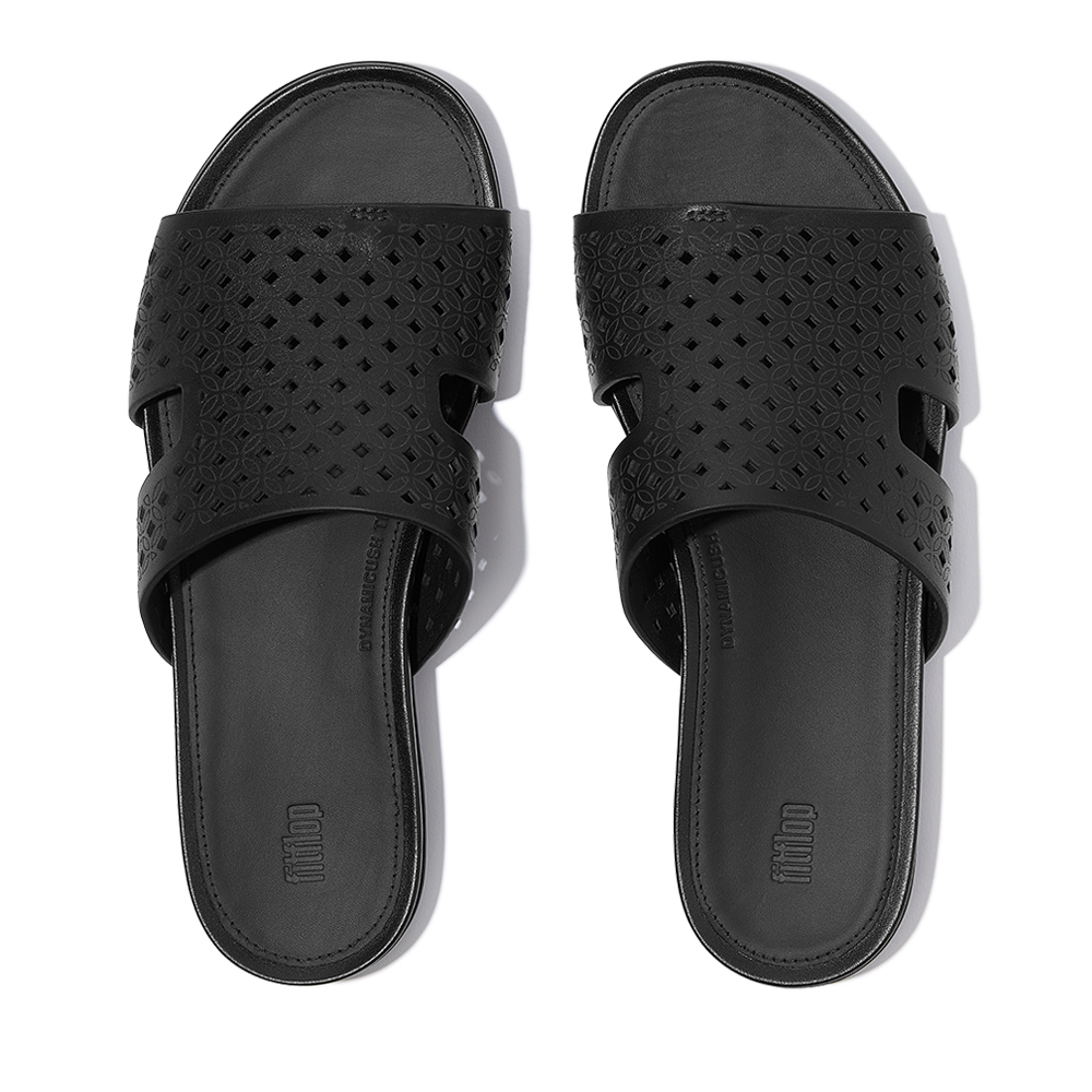 GRACIE 鏤空皮革H型涼鞋-靚黑色