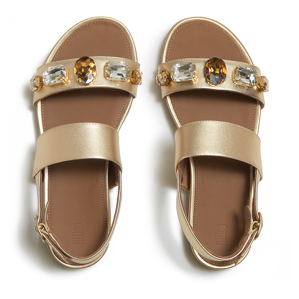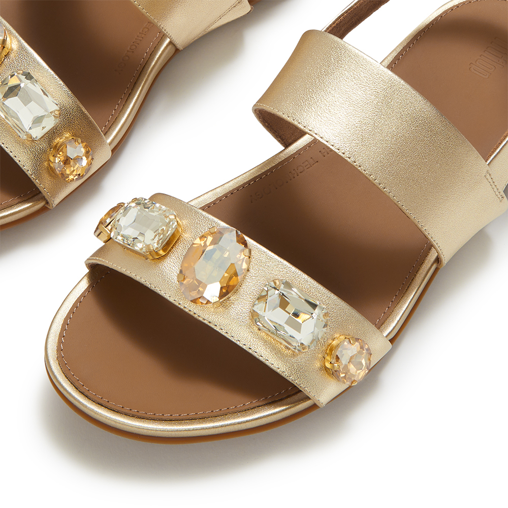 GRACIE 寶石皮革後帶涼鞋-鉑金色