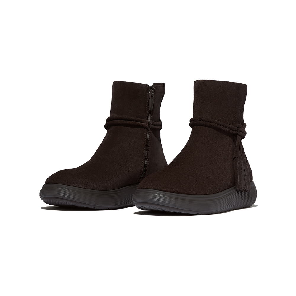 iQ-COMFF 流蘇麂皮短靴-巧克力棕色
