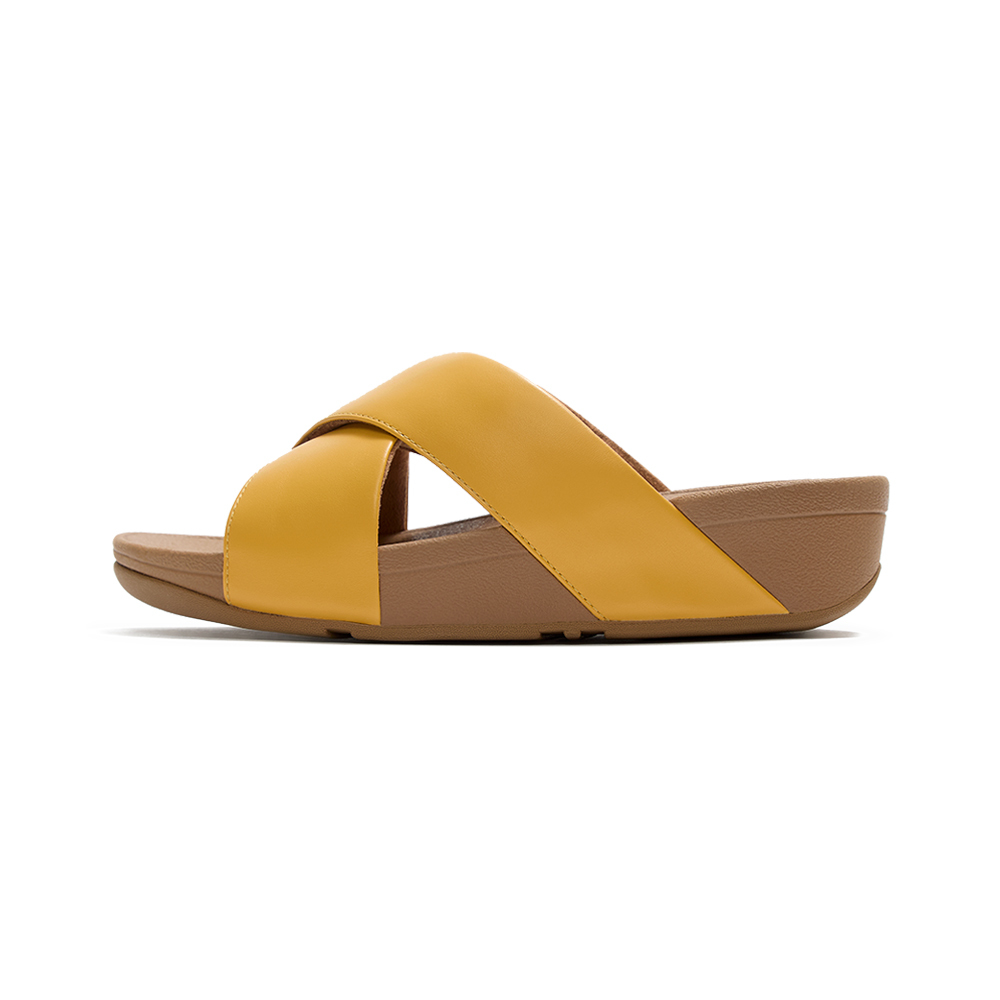 LULU 皮革交叉涼鞋-薑黃色