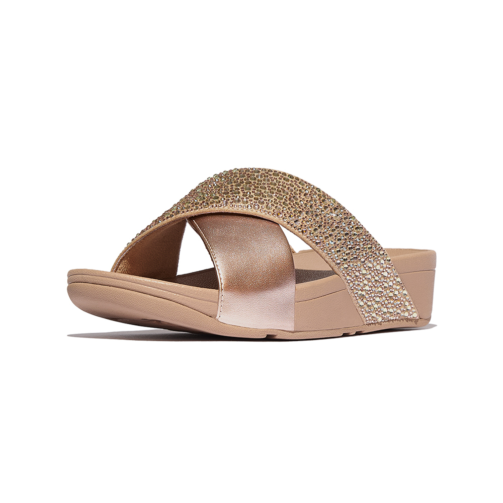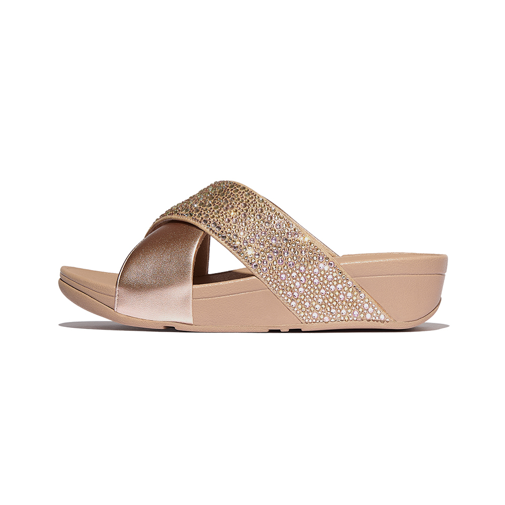 LULU 水鑽混合金屬交叉涼鞋-金屬經典米色