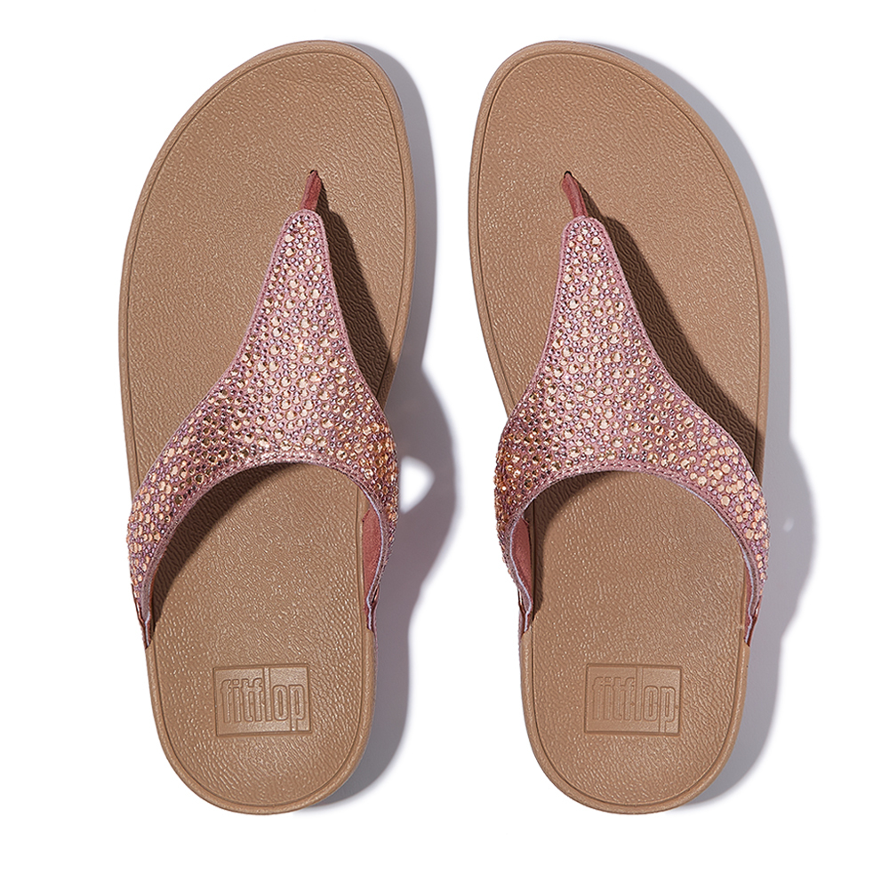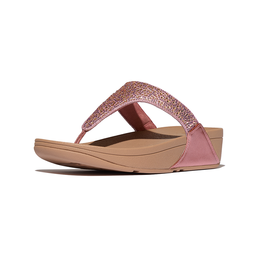LULU 水鑽混合金屬色夾腳涼鞋-金屬鏽玫瑰色
