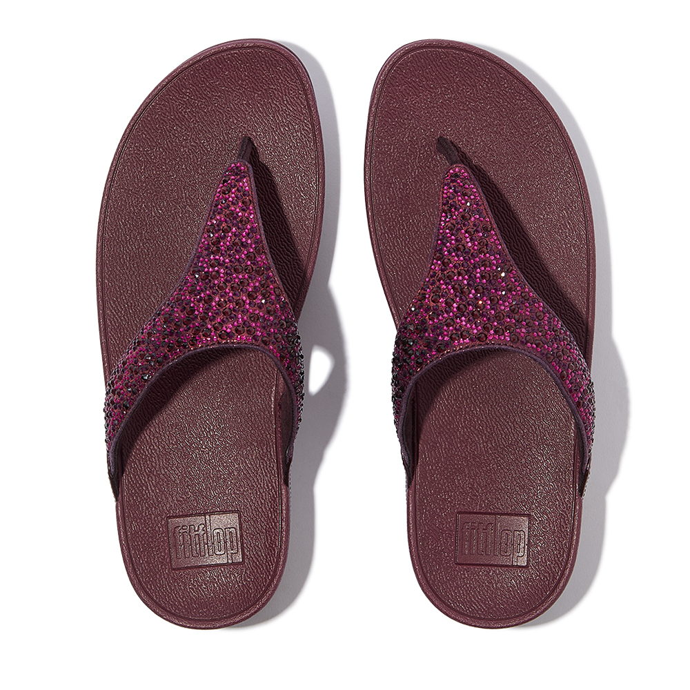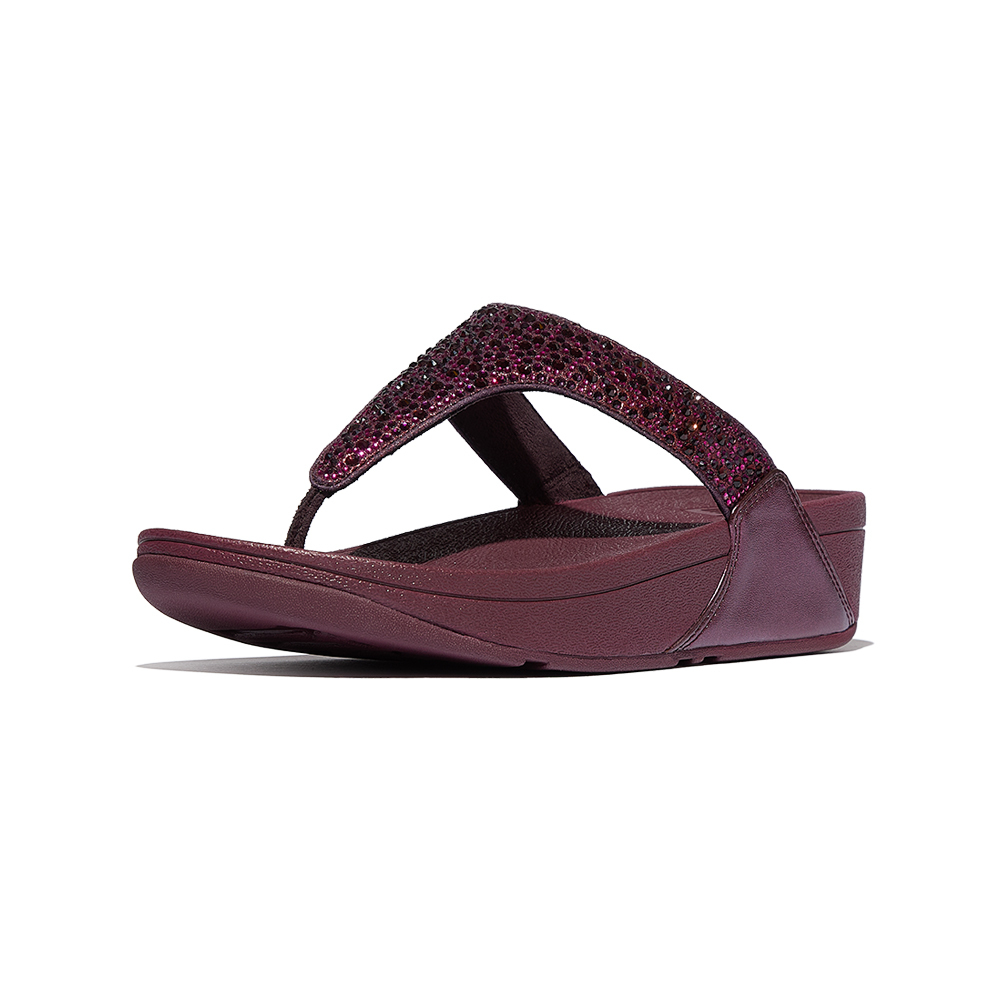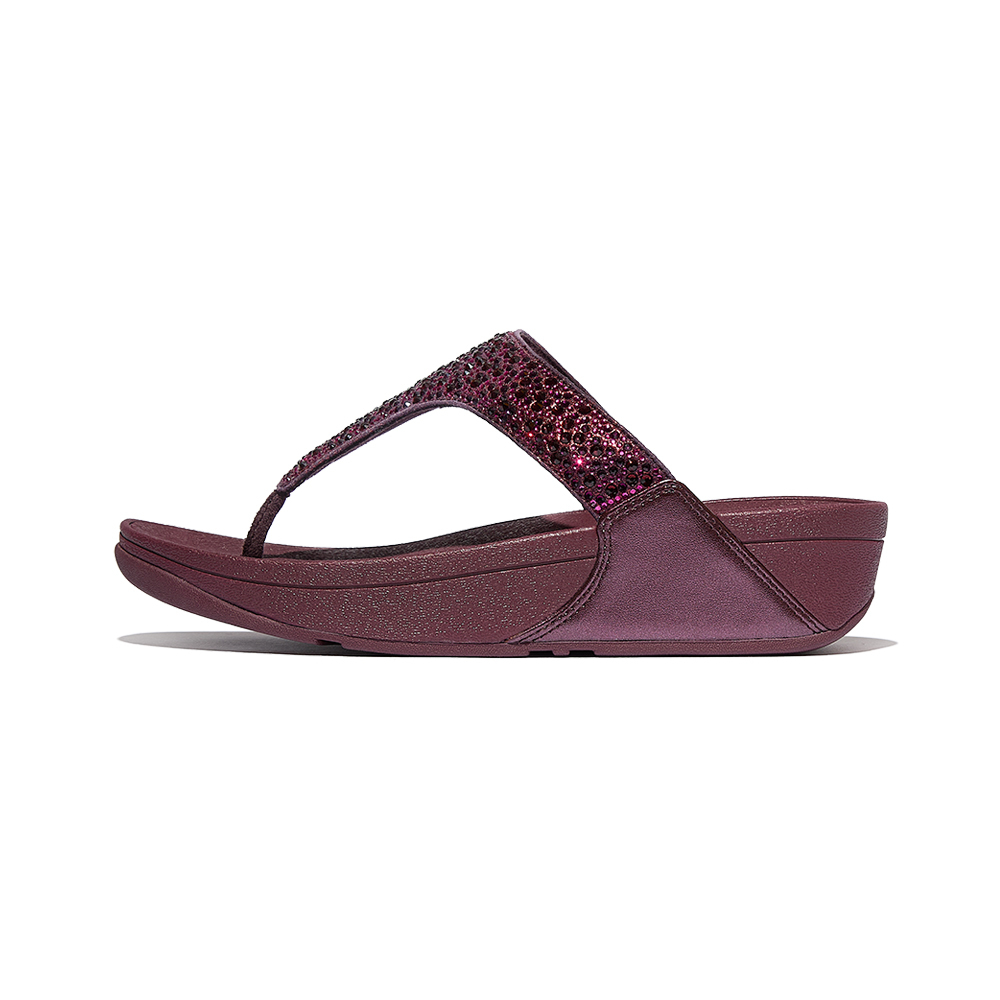 LULU 水鑽混合夾腳涼鞋-金屬李子色