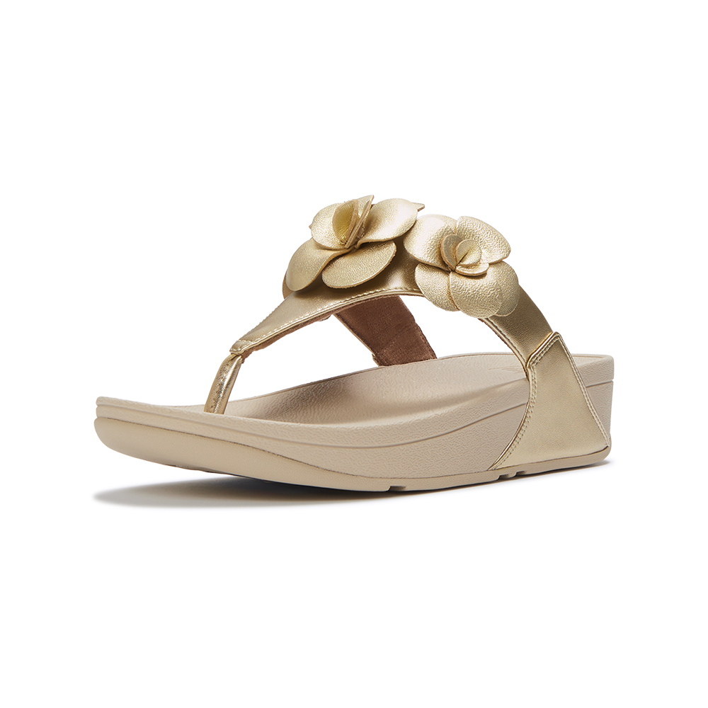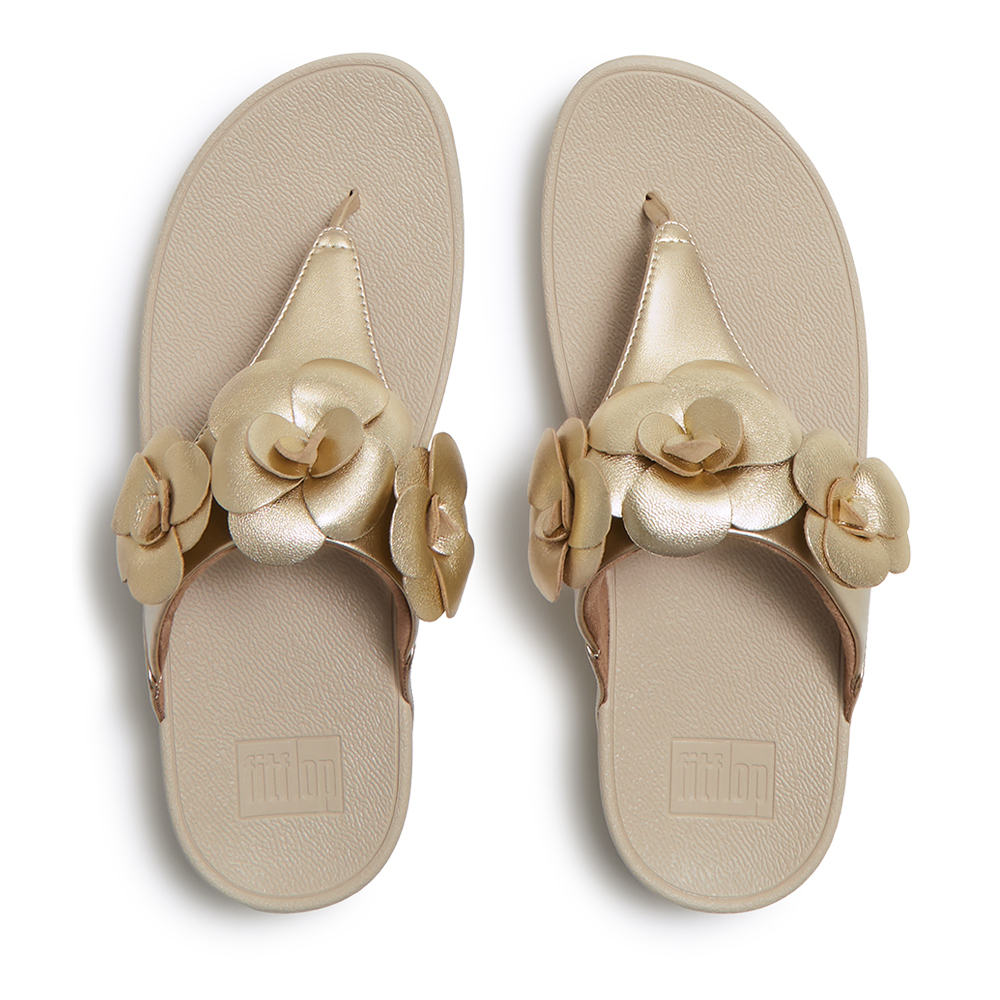 LULU 花朵夾腳涼鞋-鉑金色