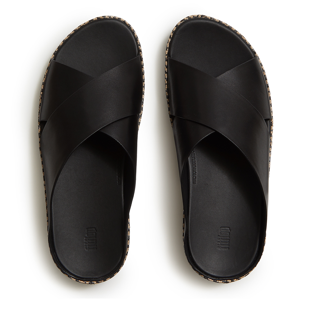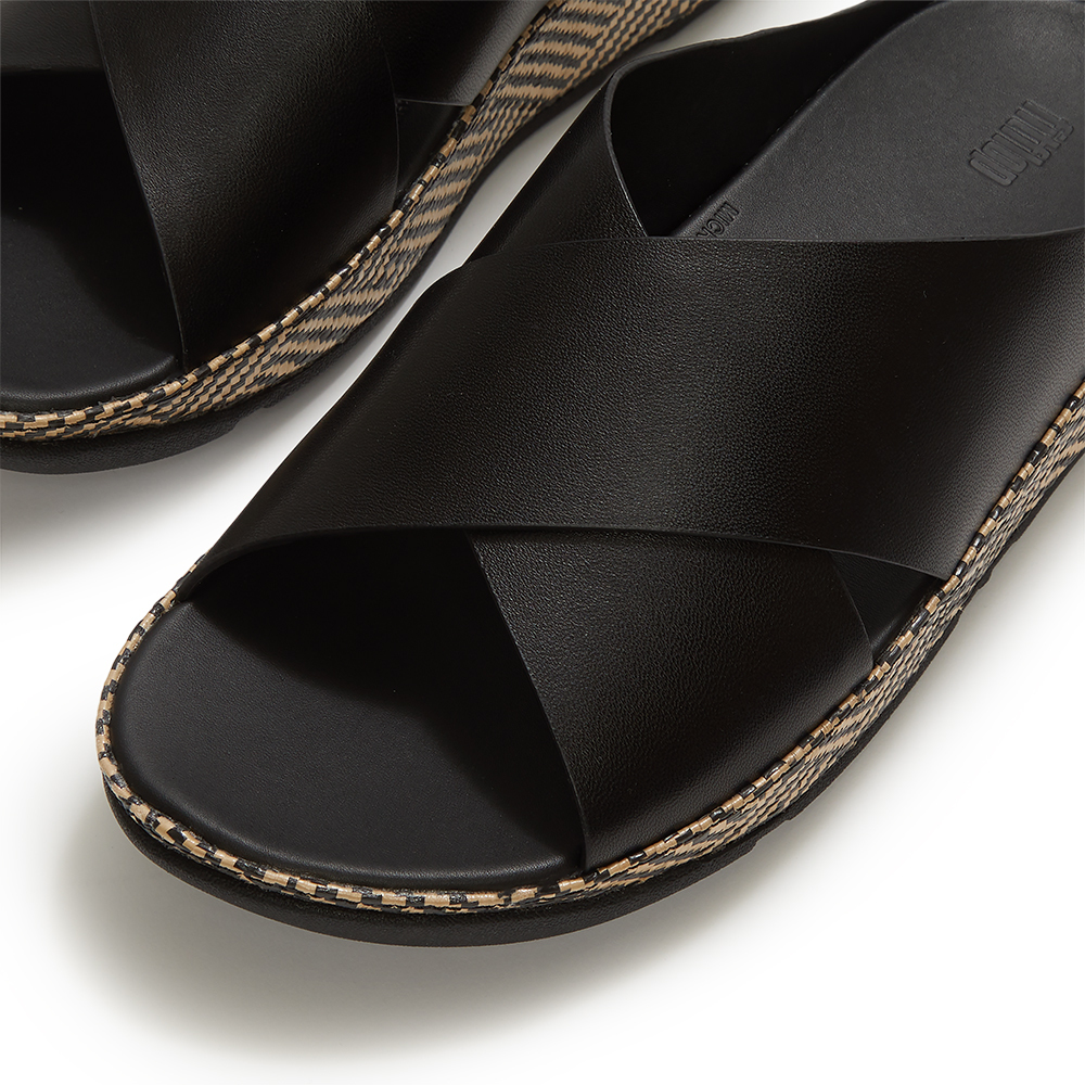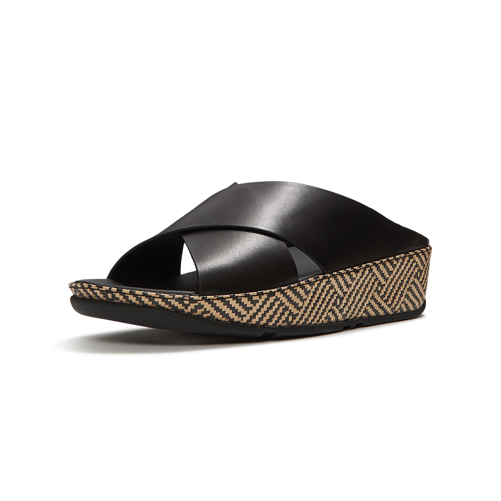LULU LUX 圖案編織皮革交叉涼鞋-黑色