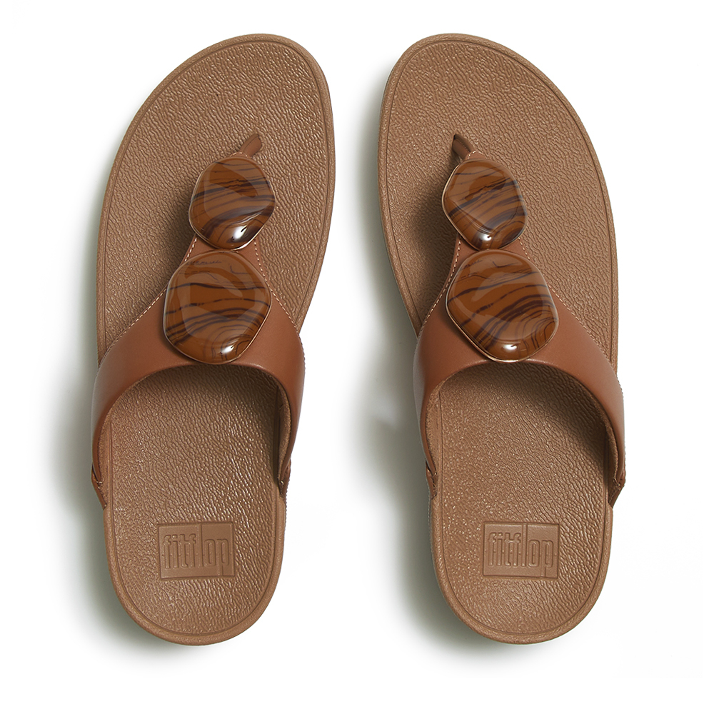 LULU 大理石紋夾腳涼鞋-深棕褐色