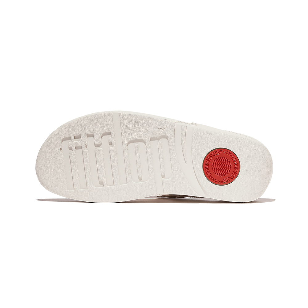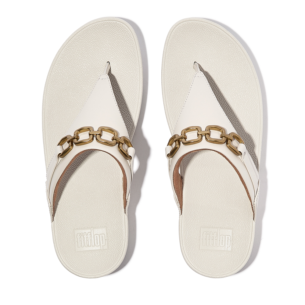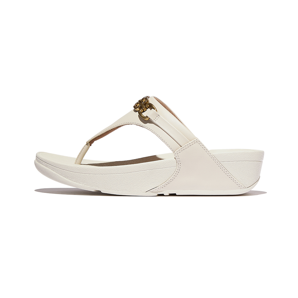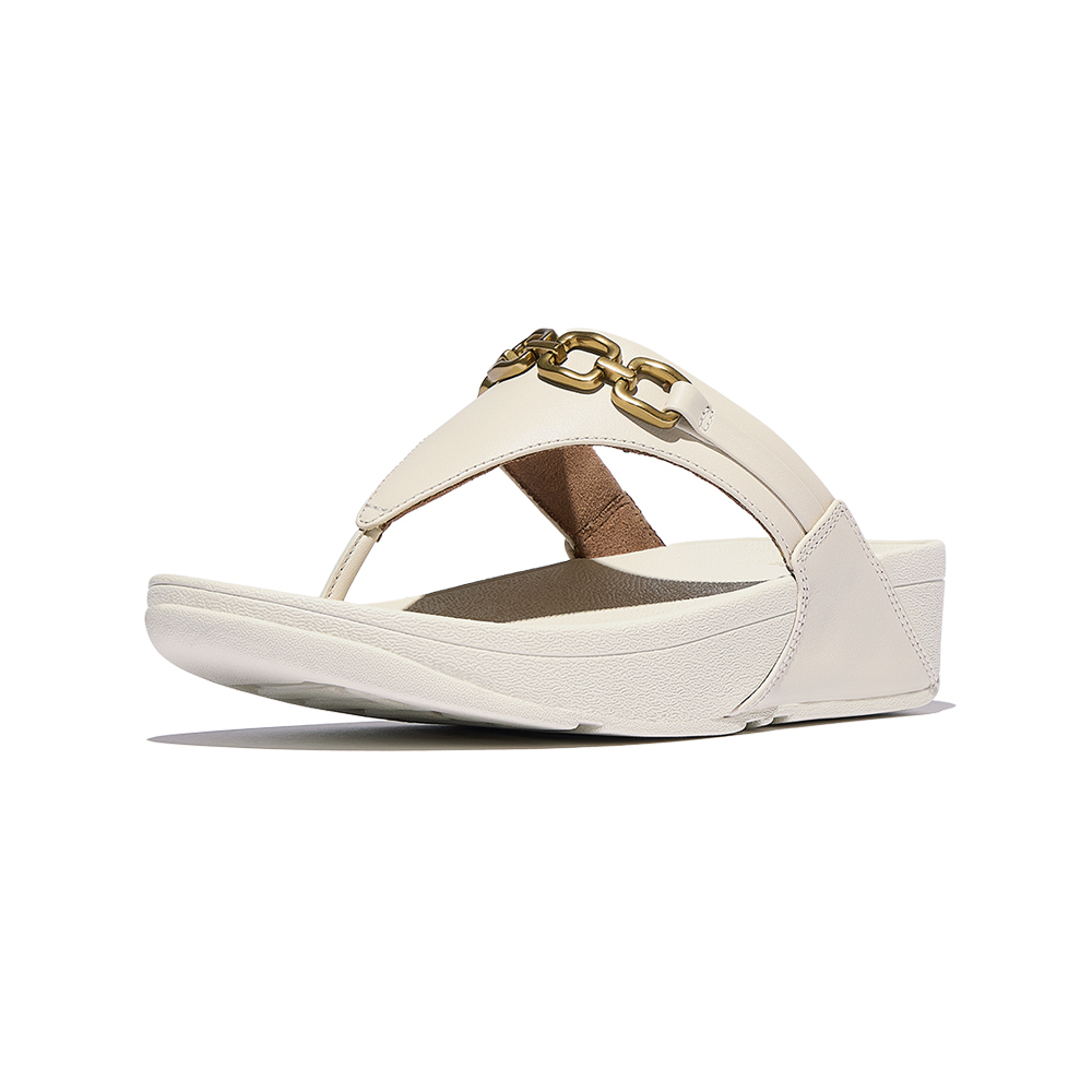 LULU 方扣鏈條皮革夾腳涼鞋-米色