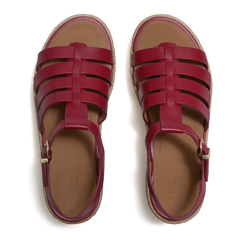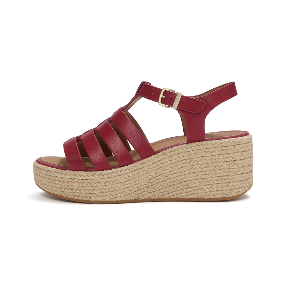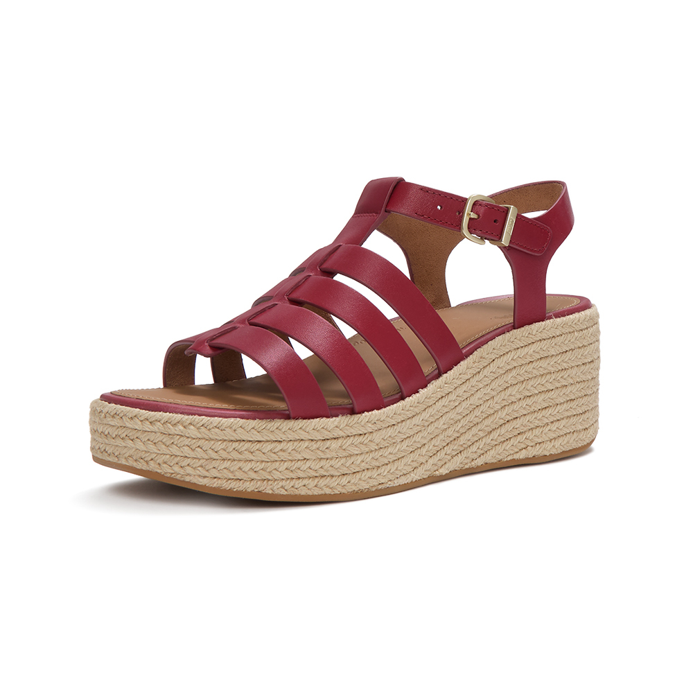 PLATFFORMS 草編皮革漁夫楔形涼鞋-焦紅莓色