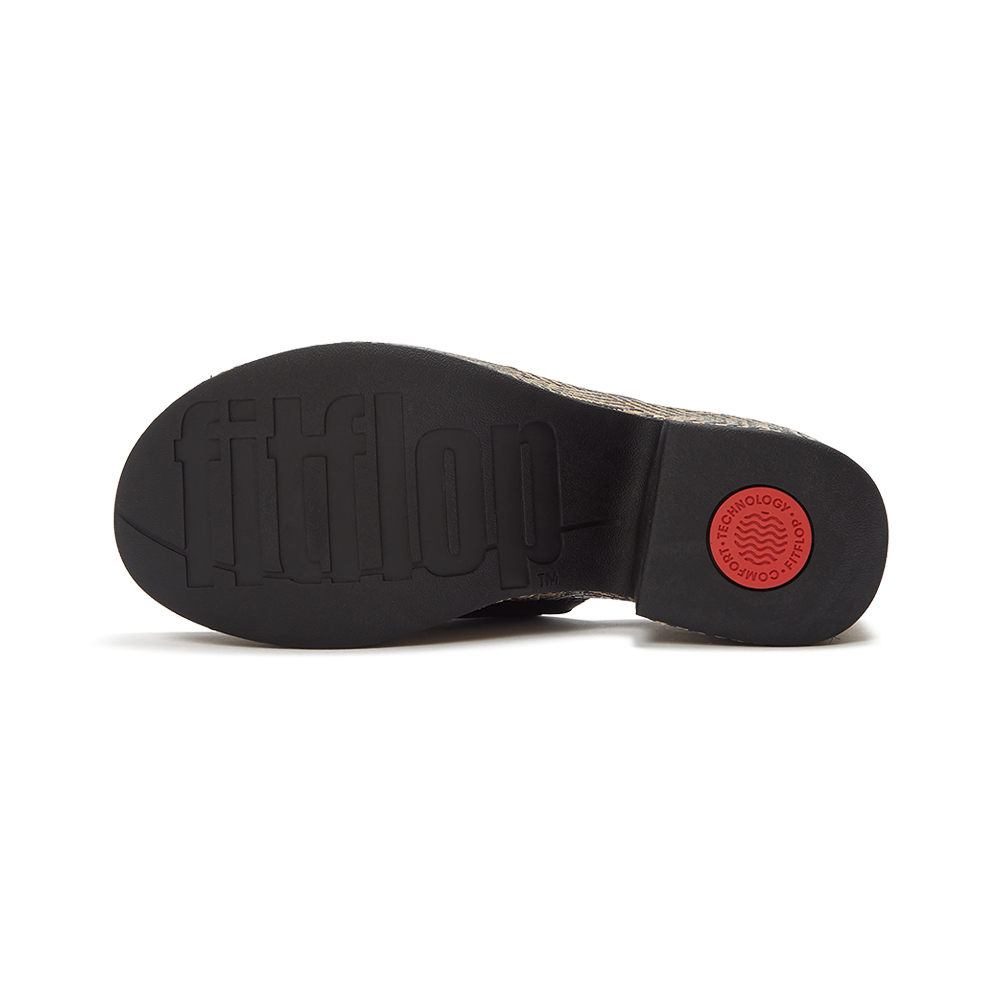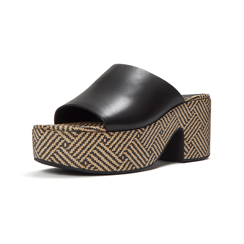 • 仿酒椰葉編織材質,並搭配幾何圖案裝飾包覆鞋底