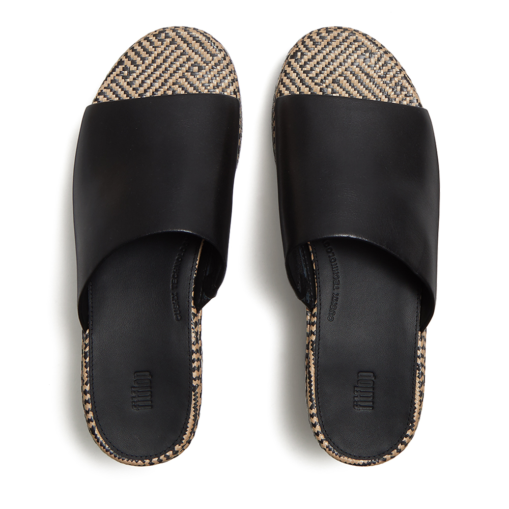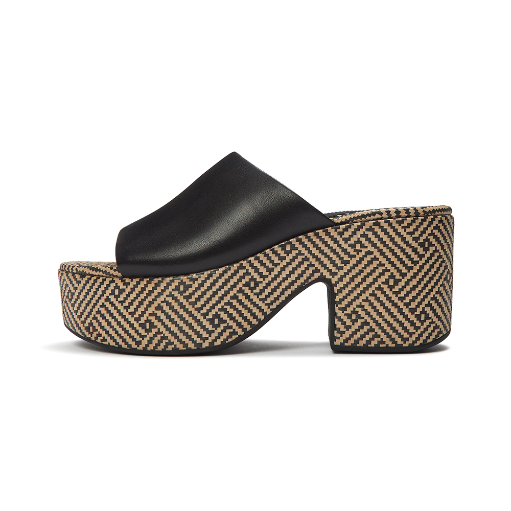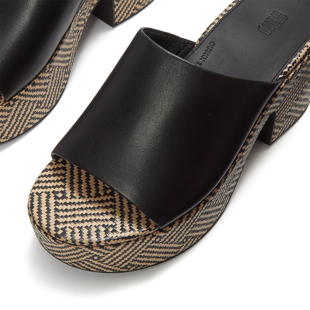 PLATFFORMS 幾何圖案編織皮革高跟涼鞋-黑色