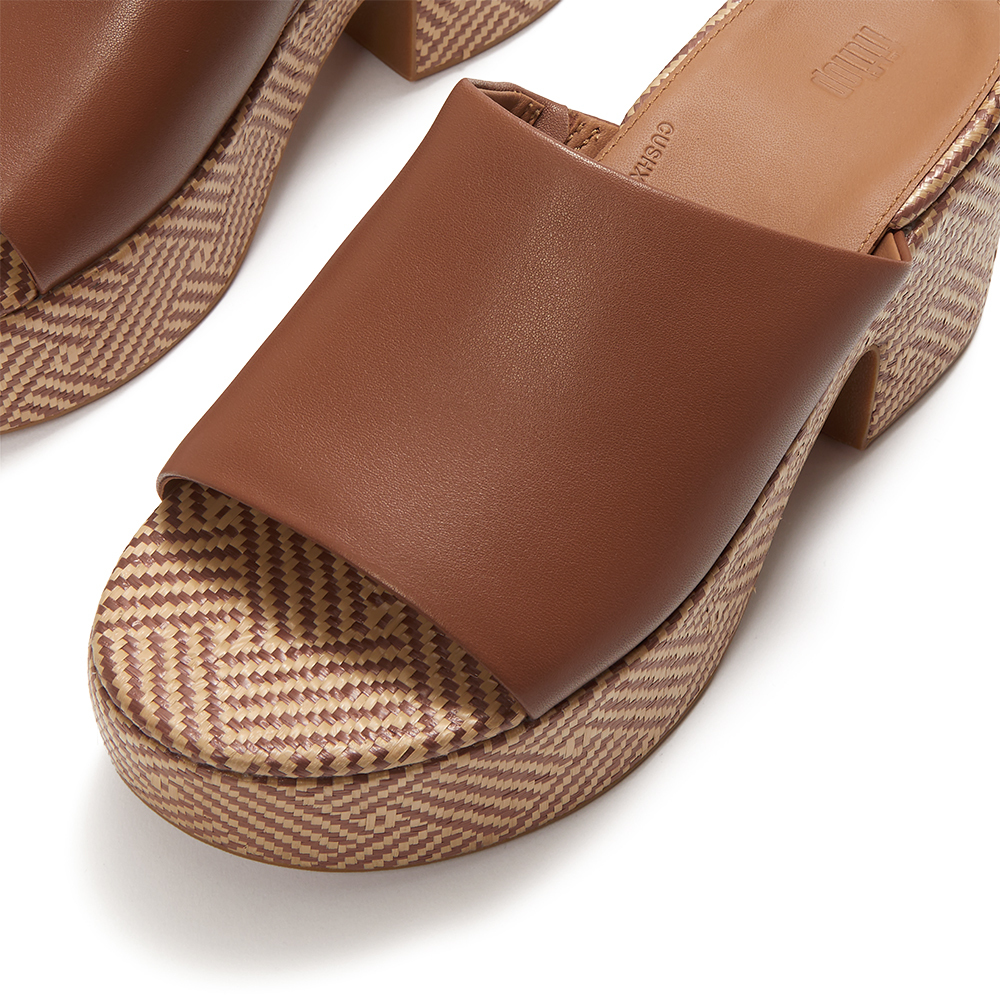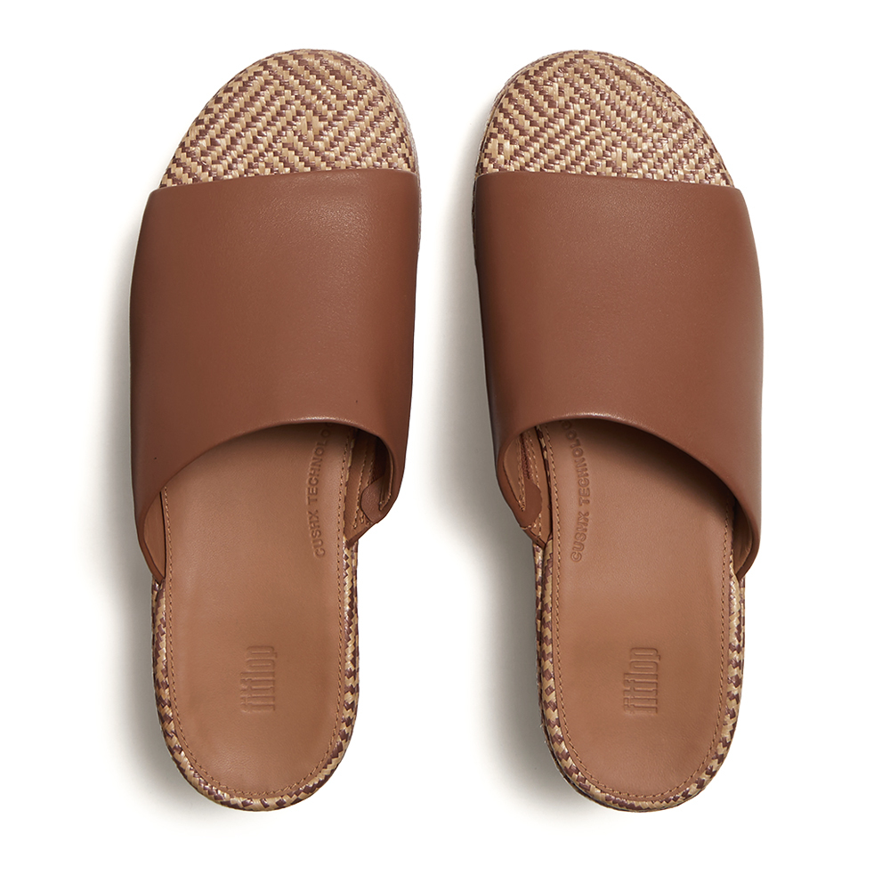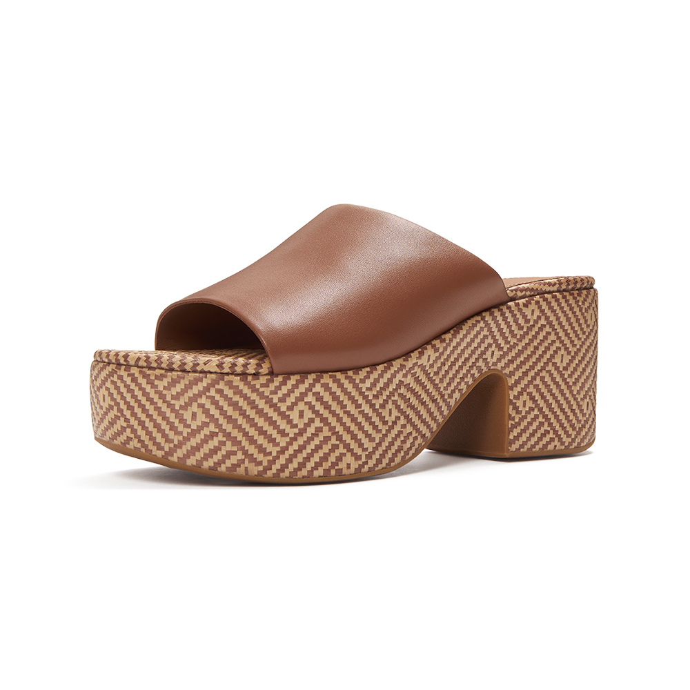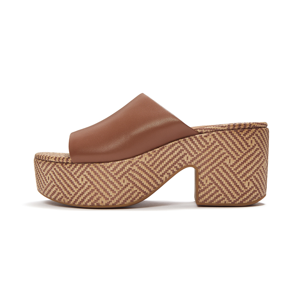 • 仿酒椰葉編織材質,並搭配幾何圖案裝飾包覆鞋底