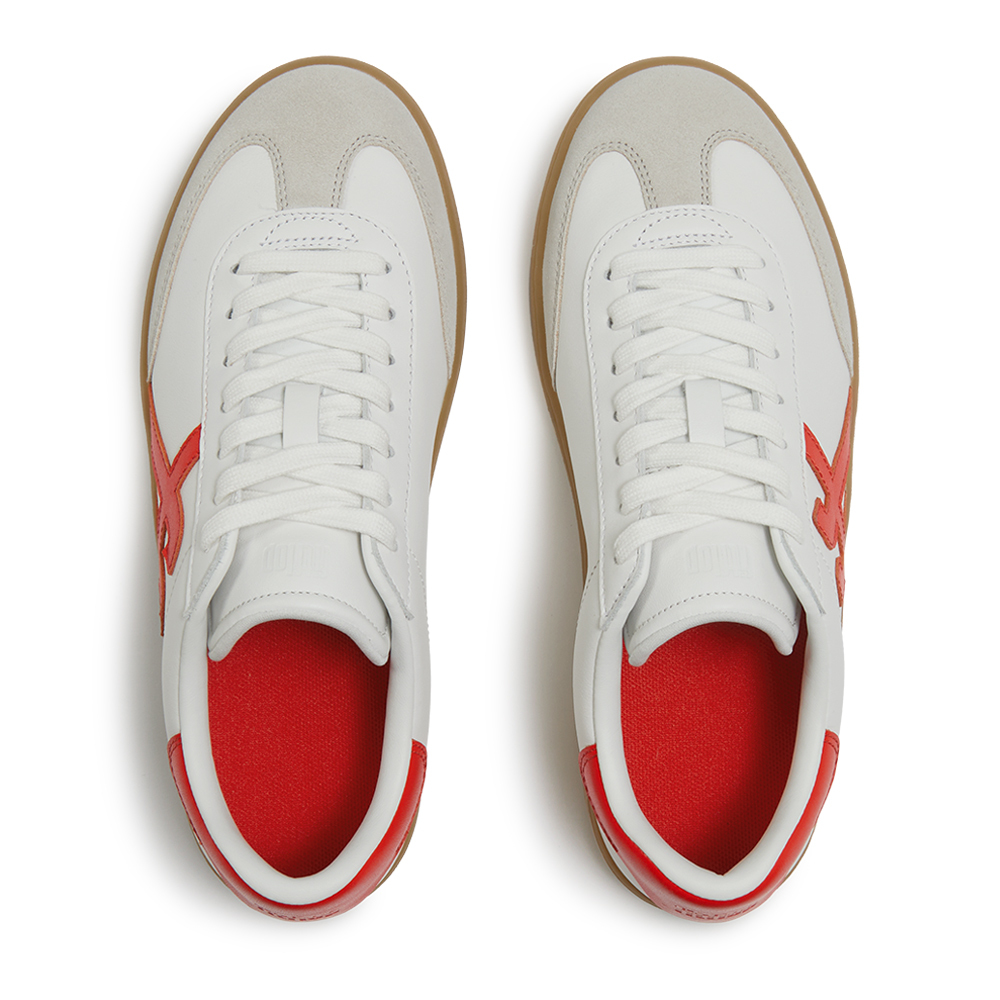 •側邊與後跟結合對比色皮革與觸感麂皮拼接